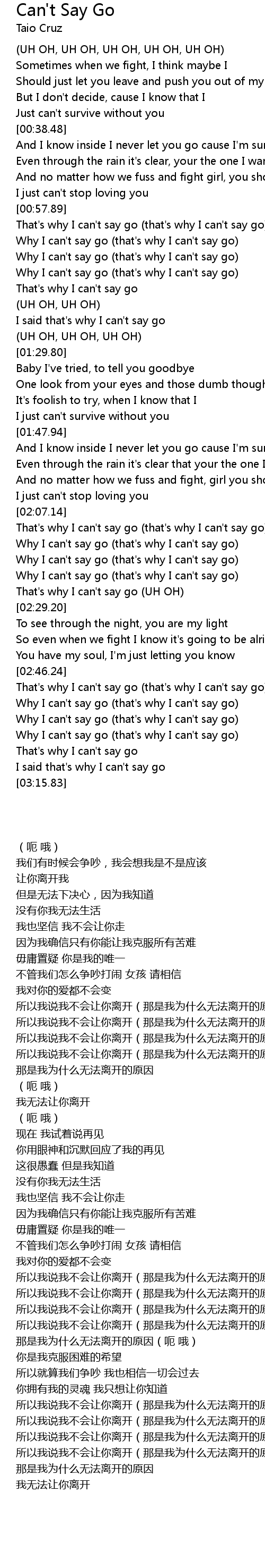 | [01:08.38] | Why I can't say go (that's why I can't say go) |