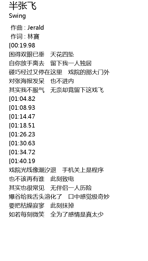 | [00:57.04] | 其实我不服气 无奈却竟留下这戏飞 |