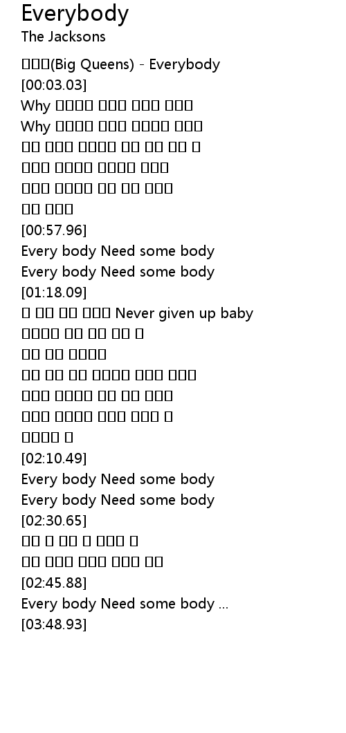 | [02:22.44] | Every body Need some body |