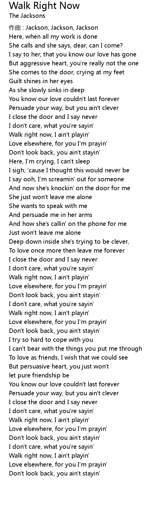 | Song | Walk Right Now |
