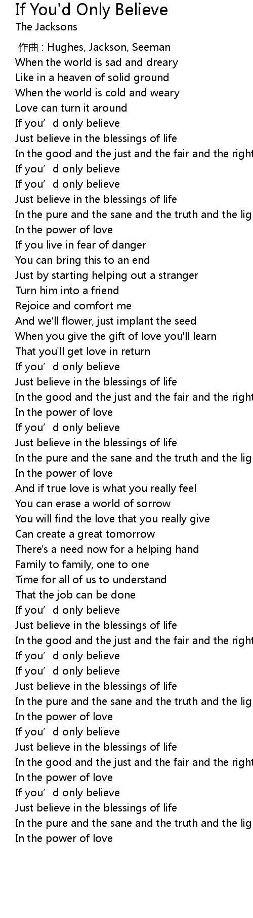 | Song | If You'd Only Believe |
