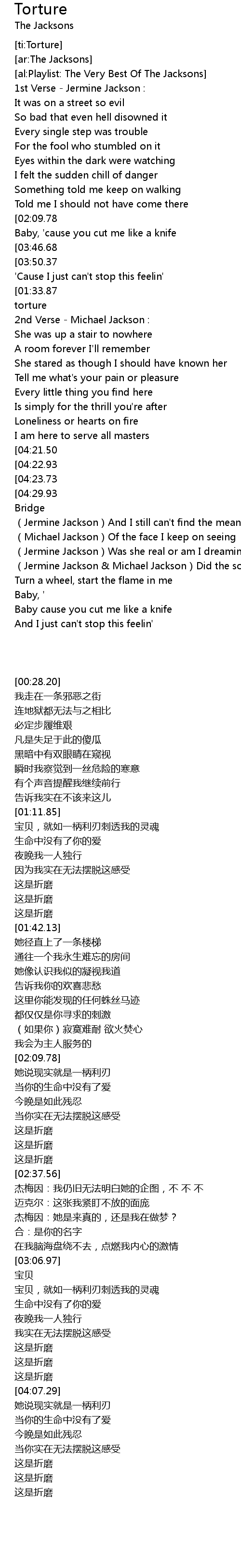 | [01:11.85][02:09.78][03:06.97][04:07.29] | Chorus The Jacksons |