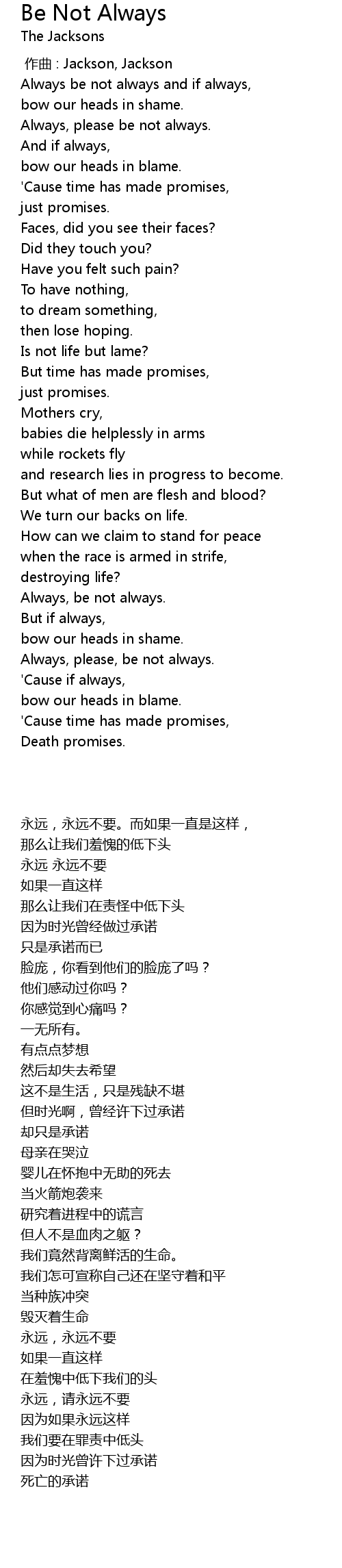 | [00:31.020] | Always be not always and if always, |