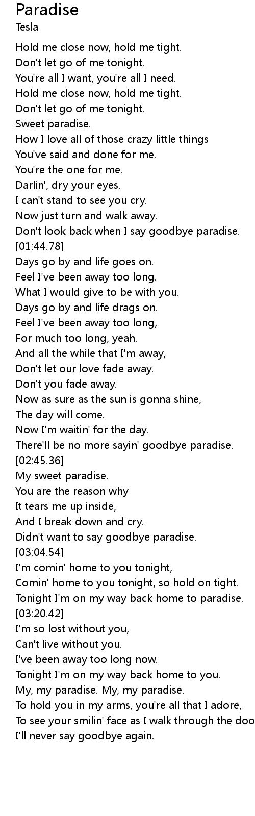 Don't look back when I say goodbye paradise. |