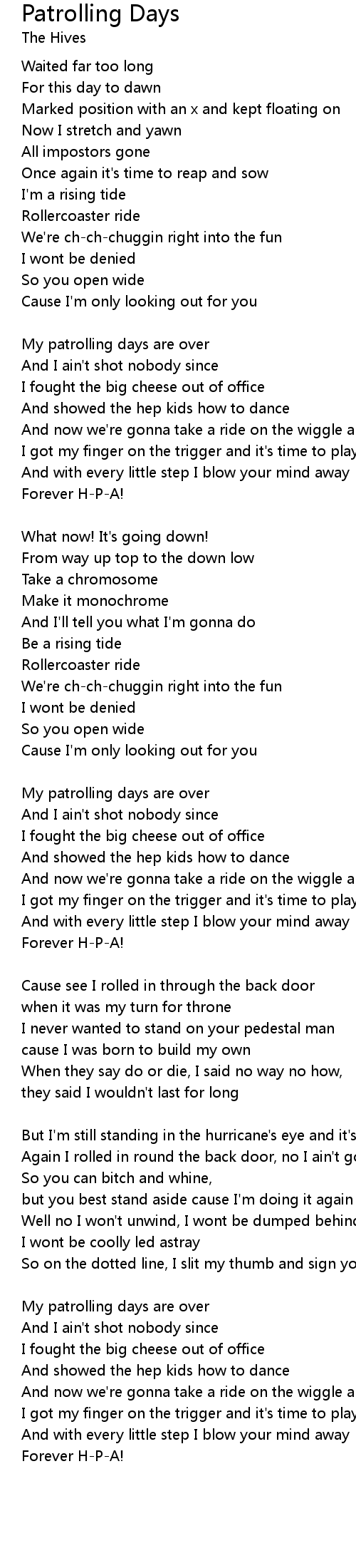 | My patrolling days are over | |