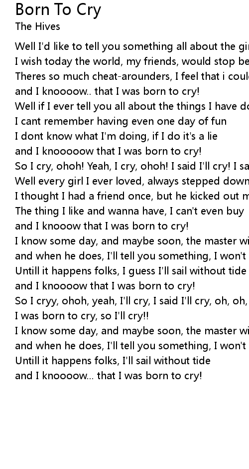 So I cryy, ohoh, yeah, I'll cry, I said I'll cry, oh, oh, oh, yeah, I said that I was born to cry, so I'll cry!! |