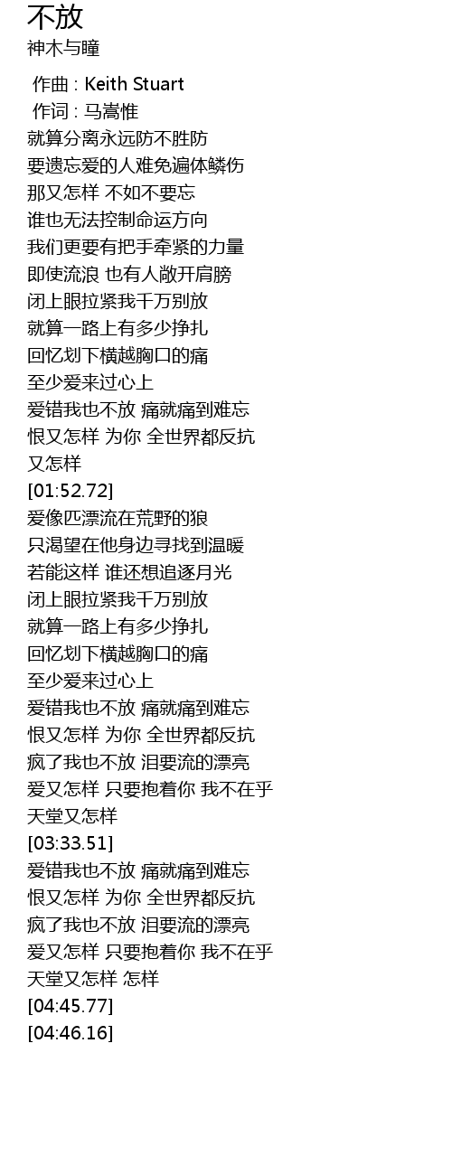 | [02:59.15] | 疯了我也不放 泪要流的漂亮 |