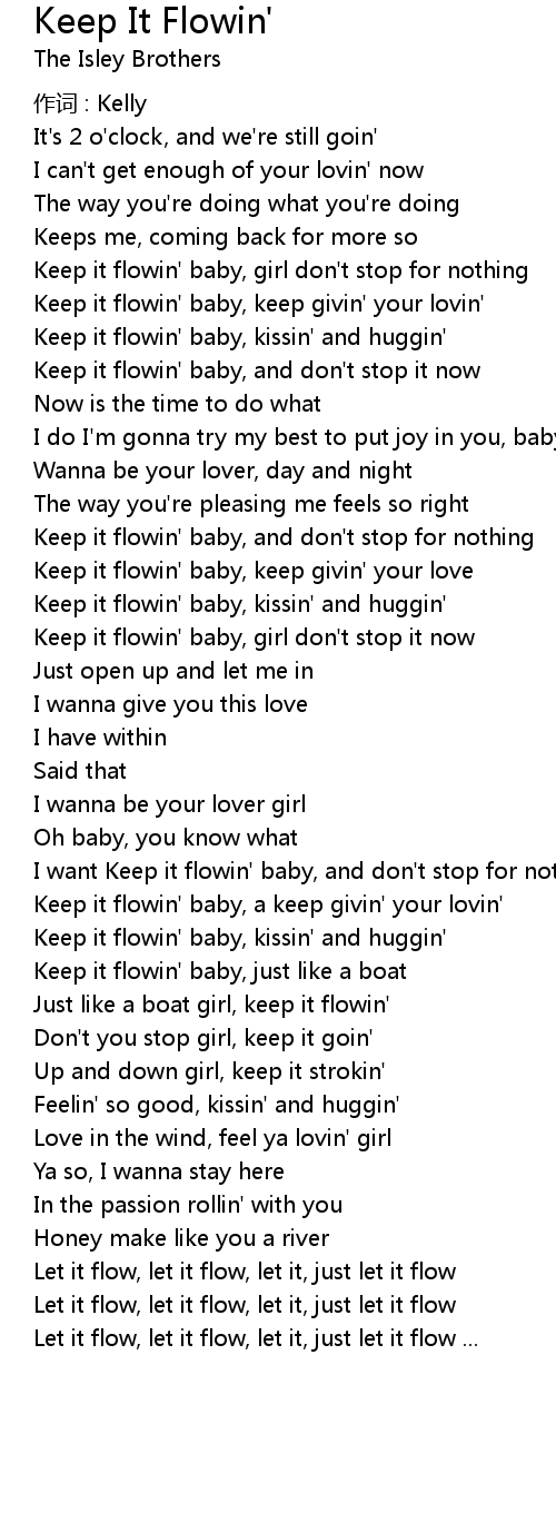| Keep it flowin' baby, keep givin' your lovin' | |