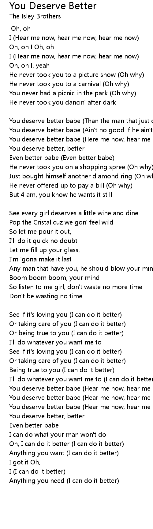 You deserve better babe (Here me now, hear me now, hear me now) |