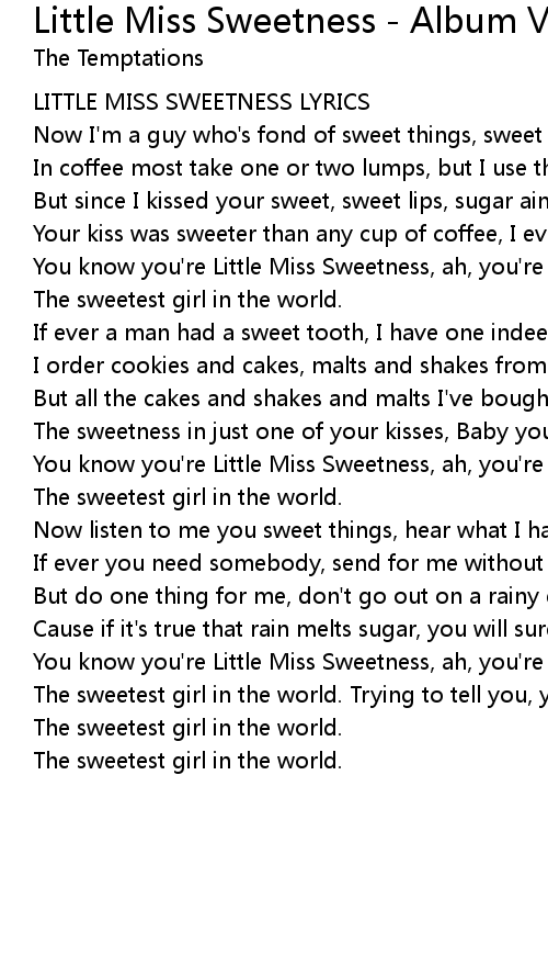 You know you're Little Miss Sweetness, ah, you're Little Miss Sweetness |