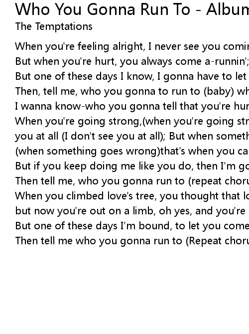 Then tell me, who you gonna run to (repeat chorus)Hmmm mm |