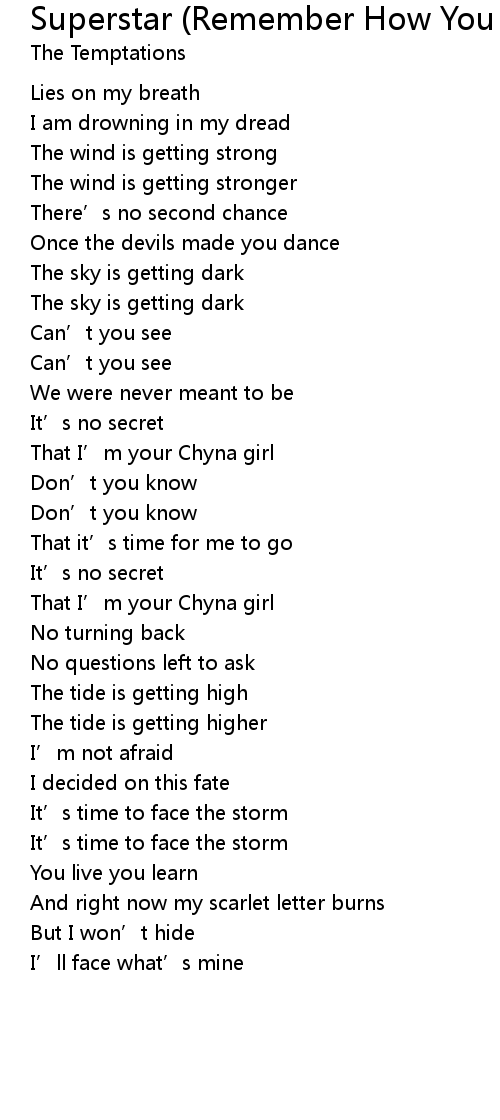 | Song | Superstar (Remember How You Got Where You Are) - Single Version |