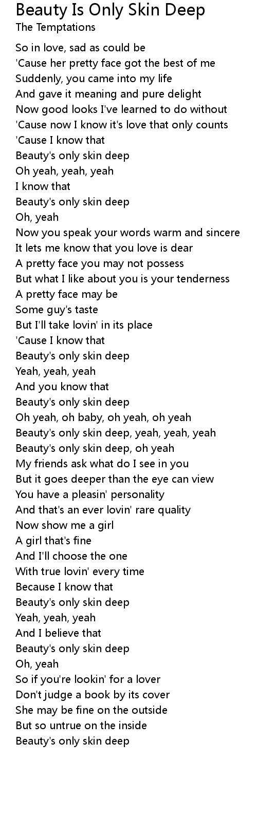 Beauty's only skin deep, yeah, yeah, yeah |