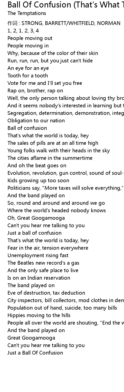 | Song | Ball Of Confusion (That's What The World Is Today) |