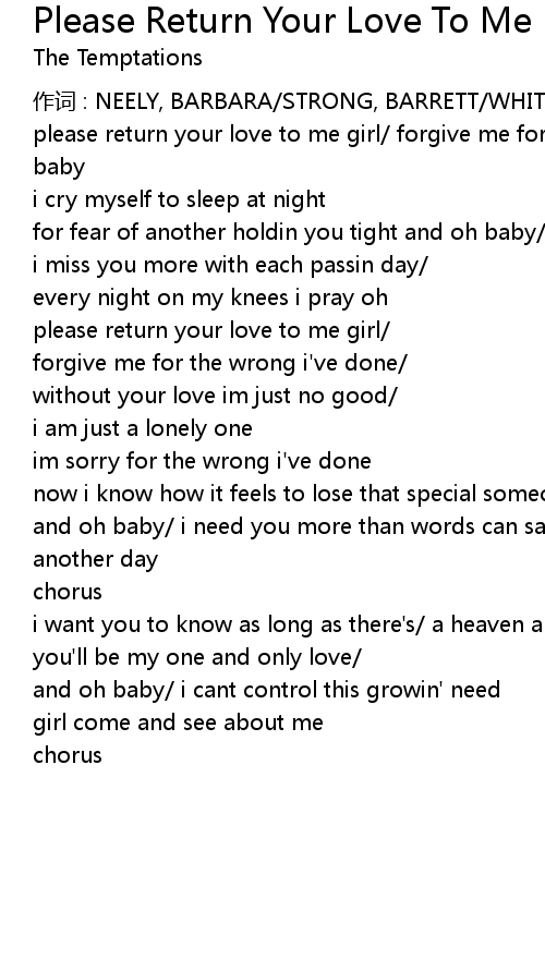 | please return your love to me girl forgive me for the wrong i' ve done and oh baby | |