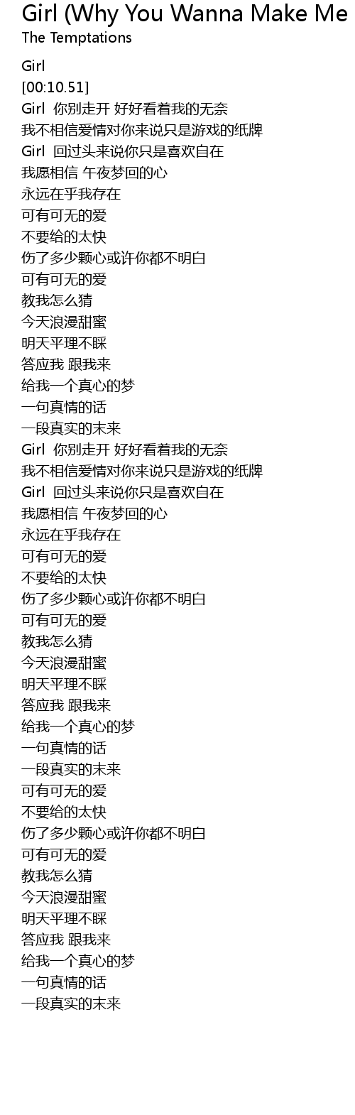 | [01:51.01] | Girl 你别走开 好好看着我的无奈 |