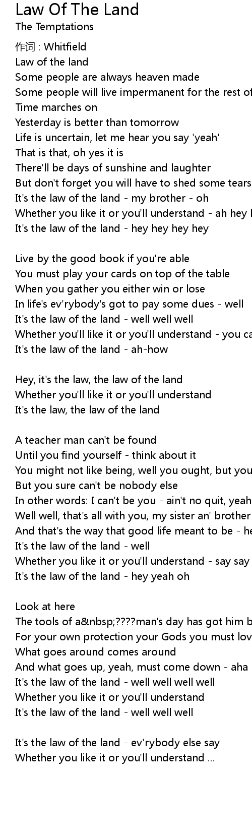 | It' s the law of the land hey yeah oh | |