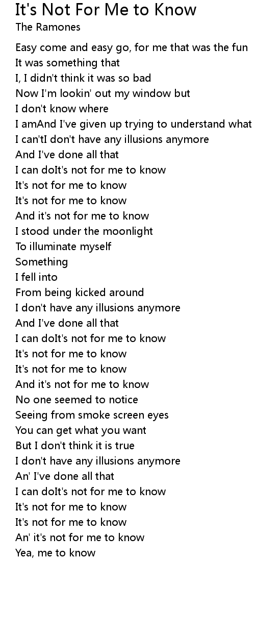 It's Not For Me to Know Lyrics