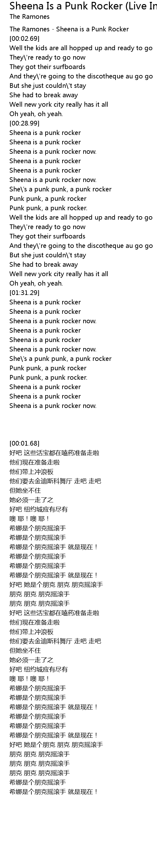 [00:01.68] The Ramones - Sheena is a Punk Rocker