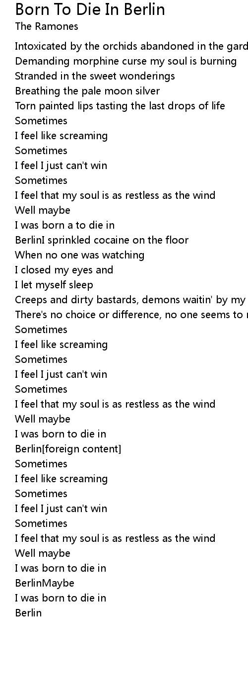 I was born to die in |