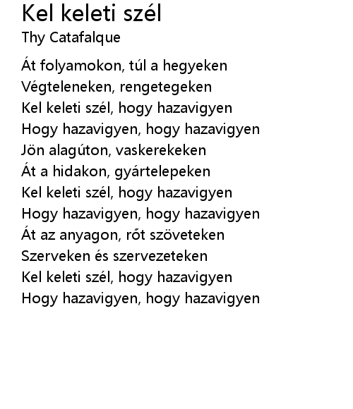 | Kel keleti szé l, hogy hazavigyen | |