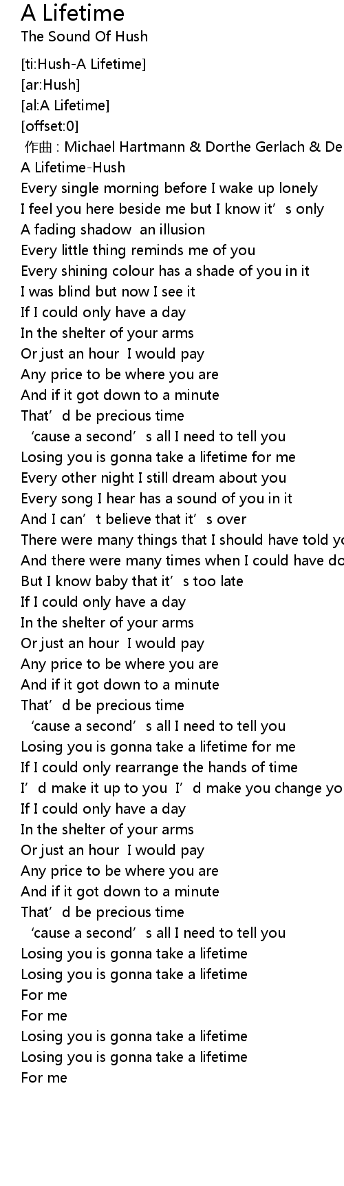 | [03:03.87] | Losing you is gonna take a lifetime |