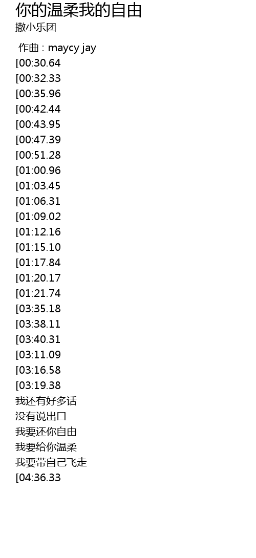 | [02:33.66][01:00.96] | 你笑着说要给我自由 |