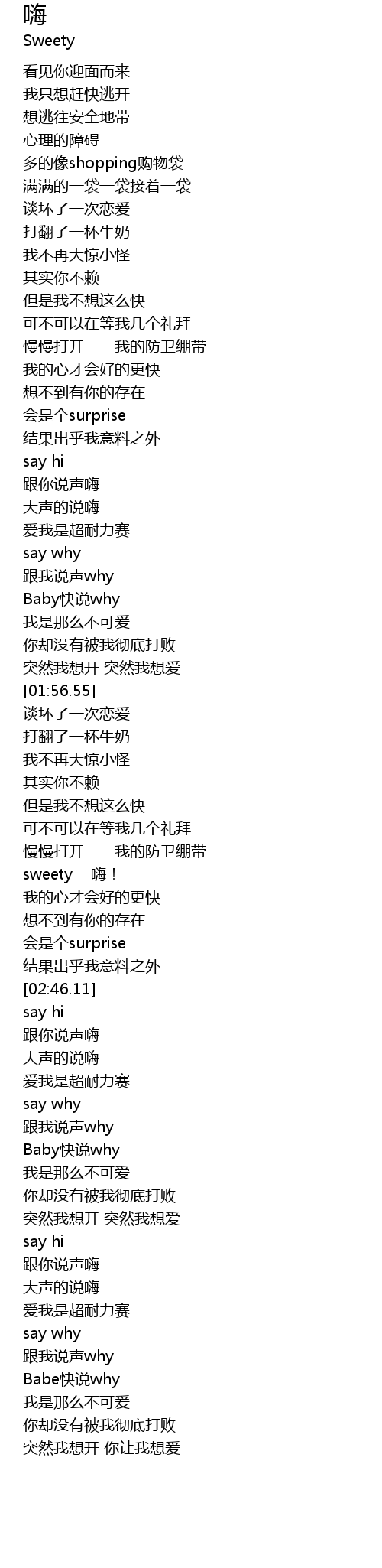 | [02:48.55] | gēn nǐ shuō shēng hāi |
