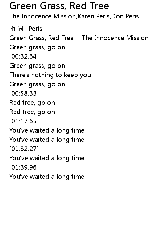 | [00:04.00] | Green Grass, Red Tree---The Innocence Mission |