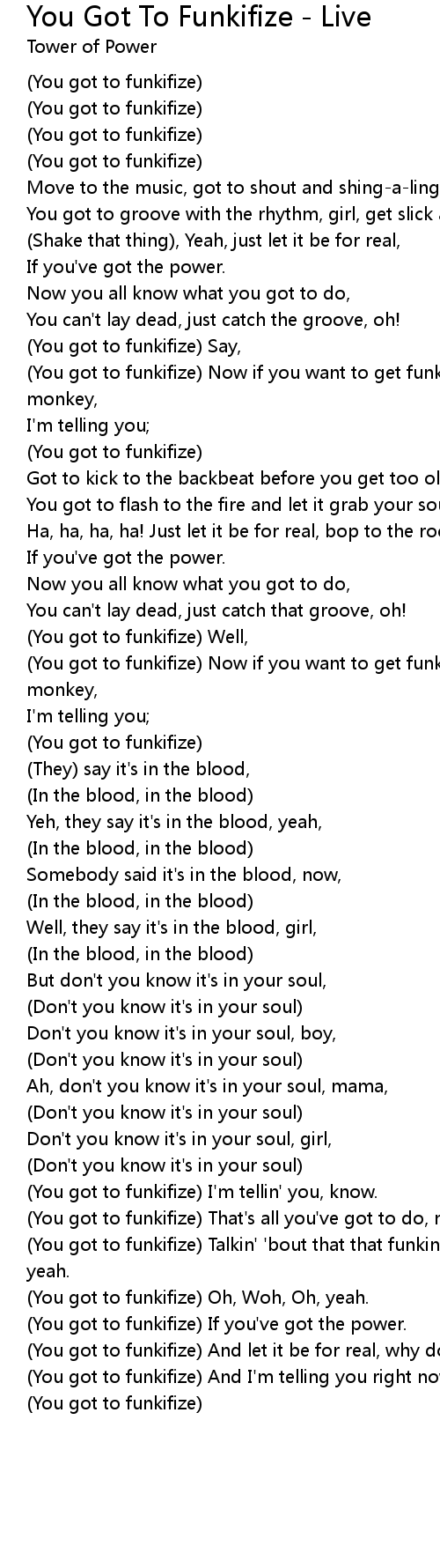 (You got to funkifize) Talkin' 'bout that that funkiness, yeah, yeah, |