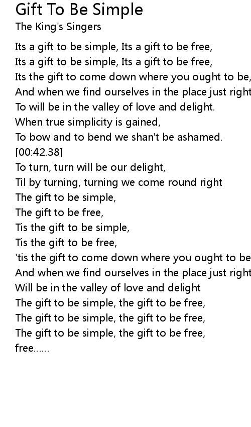 | [00:00.72] | Its a gift to be simple, Its a gift to be free, |