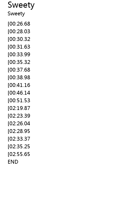 | [02:52.67][02:35.25][02:17.83][01:14.60] | yi zi yi ju it' s sweety |
