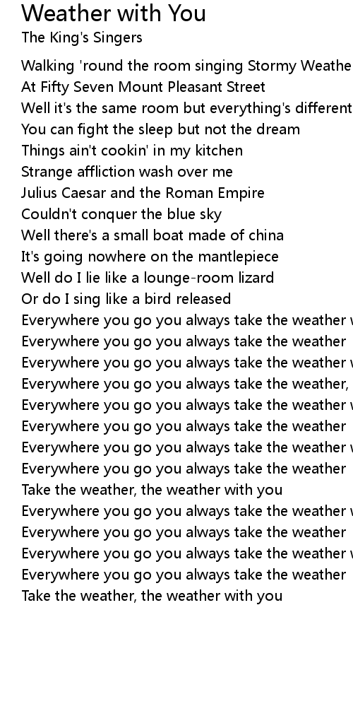 Everywhere you go you always take the weather, the weather with you |
