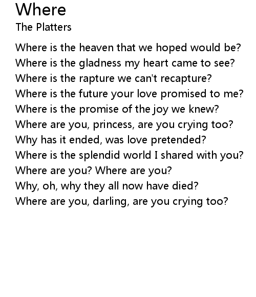 | Where are you, darling, are you crying too? |