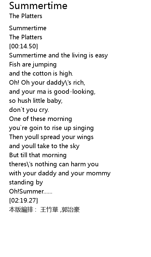 | [00:00.00] | Summertime |