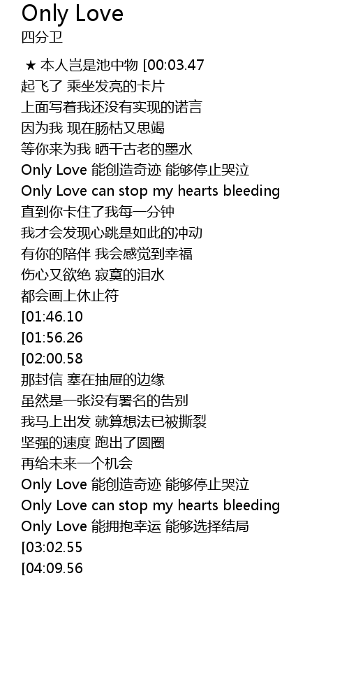 | [04:25.66][04:09.56][03:06.60] | Only Love Only Love Only Love Only Love |