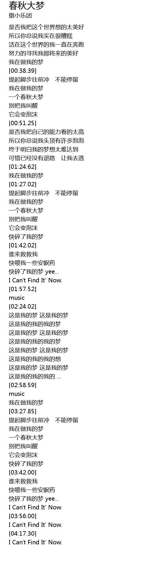 | [03:34.75] | yí gè chūn qiū dà mèng |