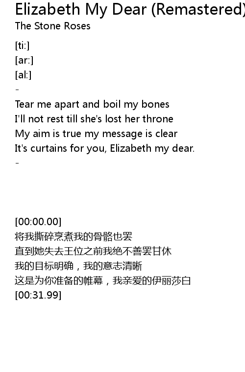| [00:23.51] | It's curtains for you, Elizabeth my dear. |