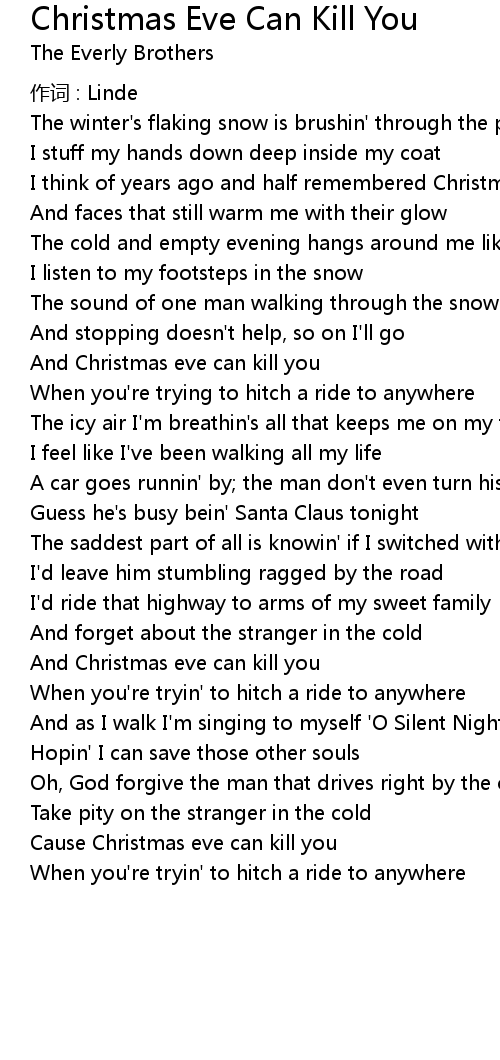 | And Christmas eve can kill you | |