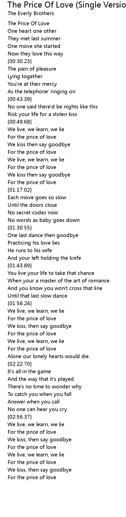 The Price Of Love (Single Version) (2006 Remastered) Lyrics