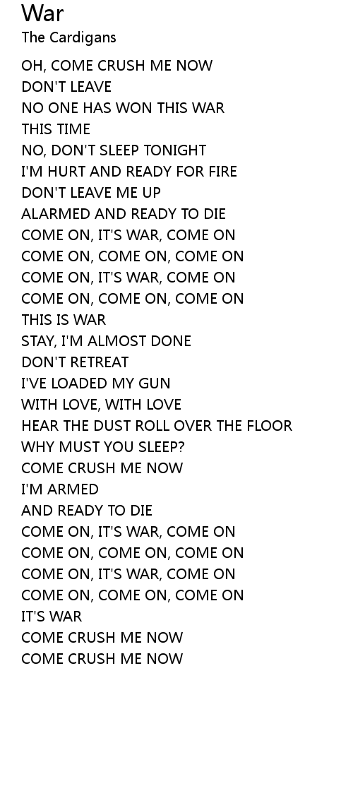 COME ON, IT'S WAR, COME ON |
