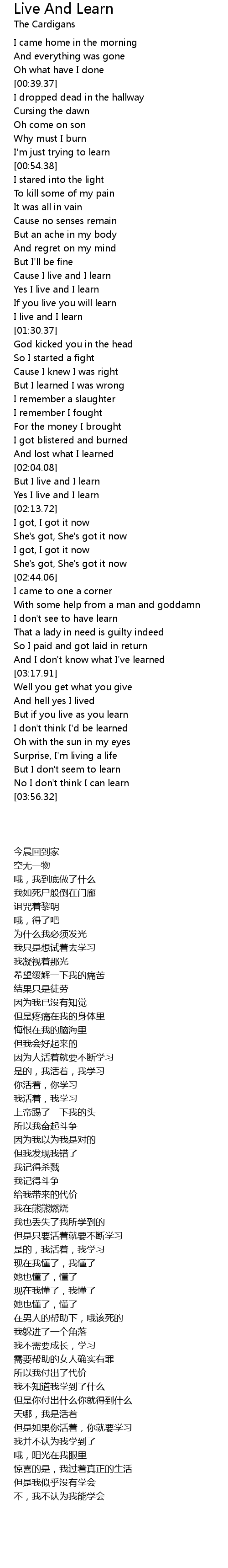 Cause I live and I learn |
