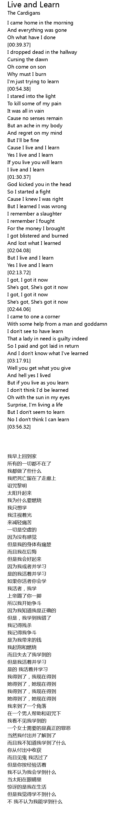 Cause I live and I learn |