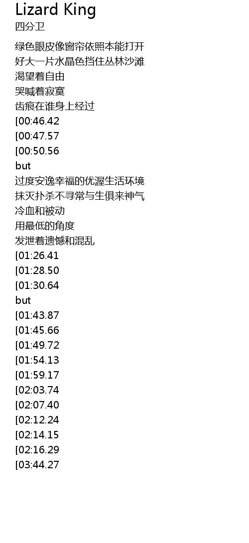 | [00:59.34][00:50.56] | lizard king no way out |