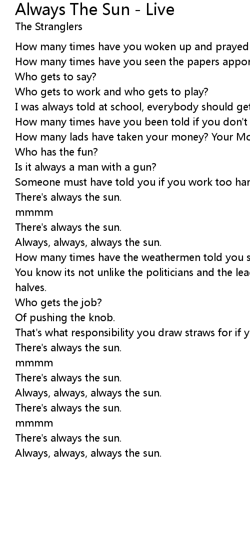 Always The Sun - Live Lyrics