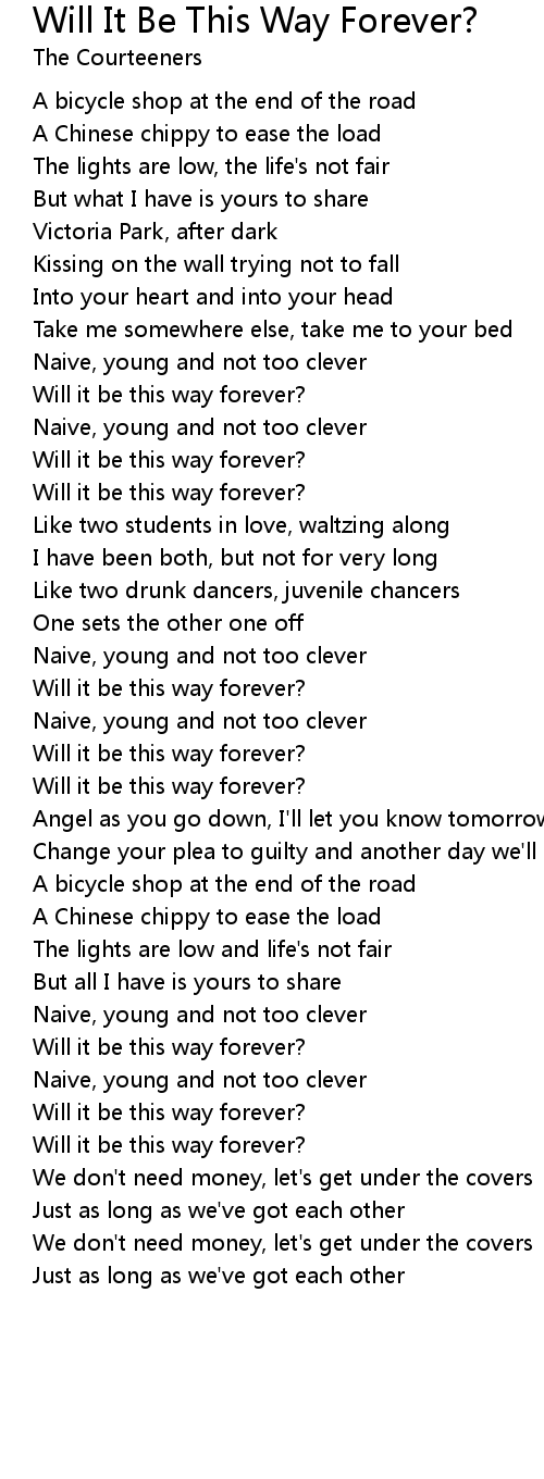 Will it be this way forever? |