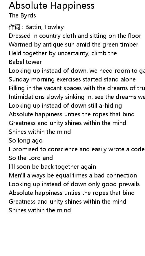 | Absolute happiness unties the ropes that bind | |