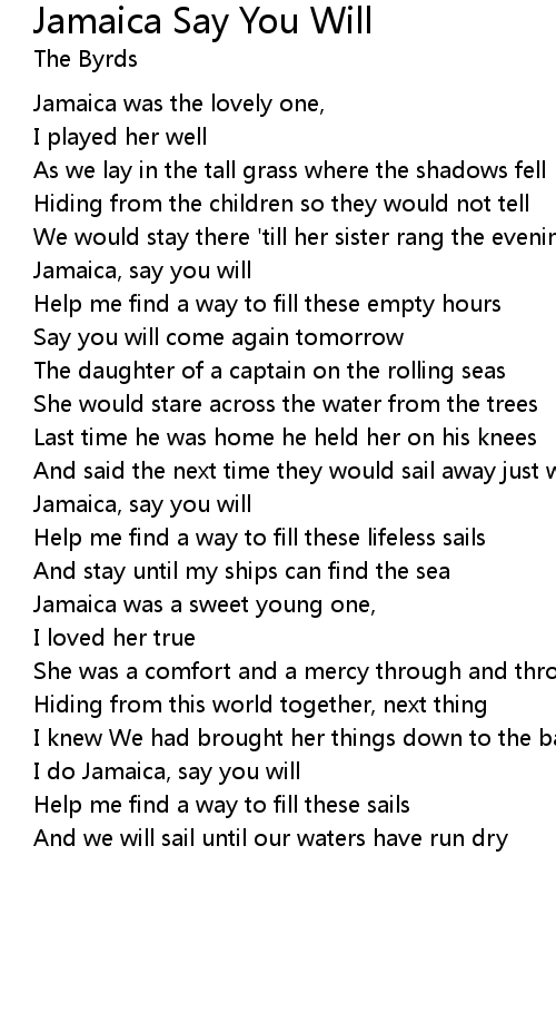 Jamaica Say You Will Lyrics