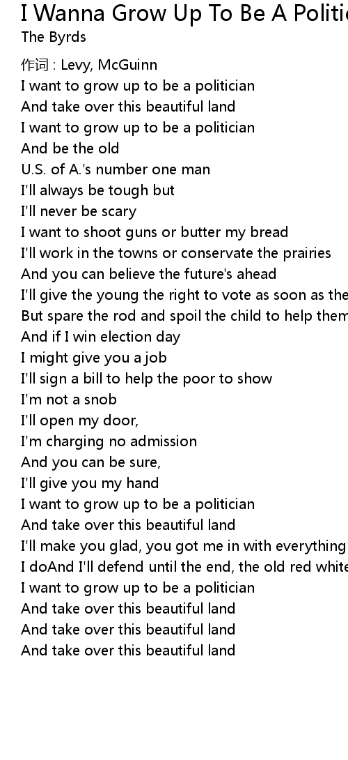 | Song | I Wanna Grow Up To Be A Politician |