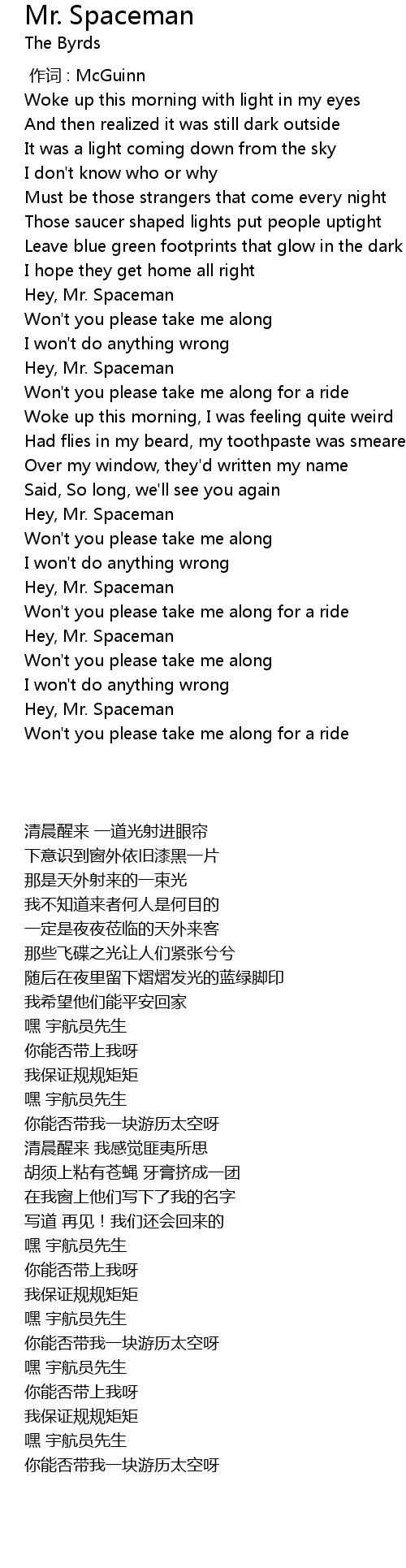 | [00:22.44] | Those saucer shaped lights put people uptight |